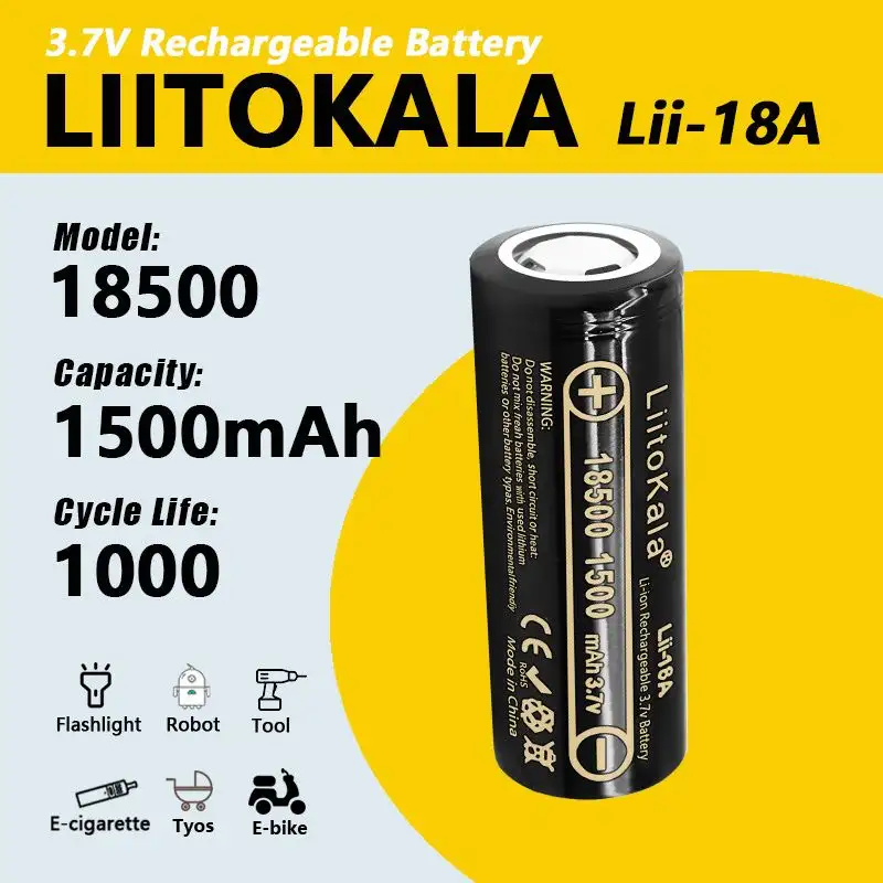 The LiitoKala Lii-18A is a 18500 Li-ion rechargeable battery rated at 3.7V 1500mAh. Engineered for compact, high-drain devices, it delivers strong, stable power output with excellent cycle life and discharge reliability. Suitable for both consumer and industrial applications.