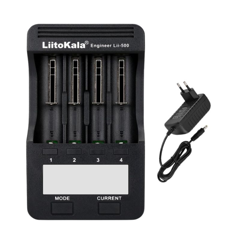 The LiitoKala Lii-500 is a multi-functional 4-slot smart charger designed for Li-ion, NiMH, and NiCd rechargeable batteries. It provides selectable charge currents, USB output, and discharge/capacity testing capabilities. Built for EU power standards, it combines advanced charging control with precision testing, ideal for professional and household use.