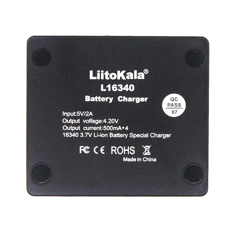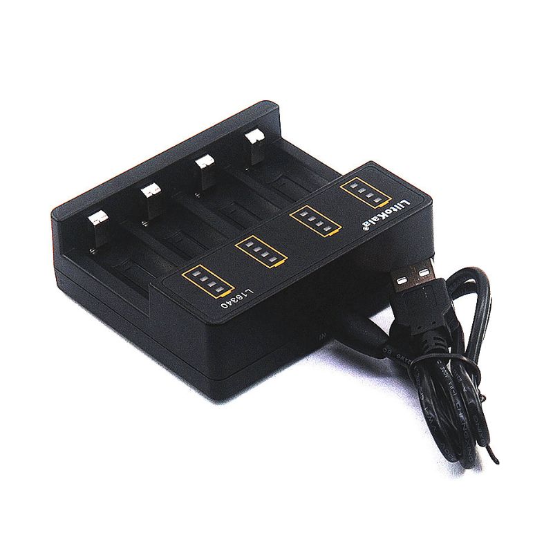 - Charges up to four 16340 batteries simultaneously