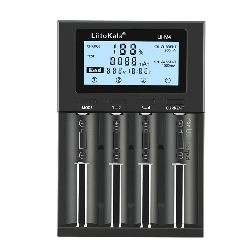 The LiitoKala Lii-M4 is a high-efficiency 4-slot intelligent charger designed for Li-ion and NiMH/NiCd rechargeable batteries. With DC 5V/2A input, independent charging slots, and USB output, it delivers safe, controlled, and multi-functional performance, including charge, discharge, and power bank capabilities.
