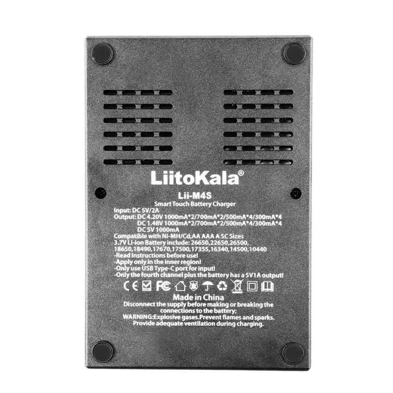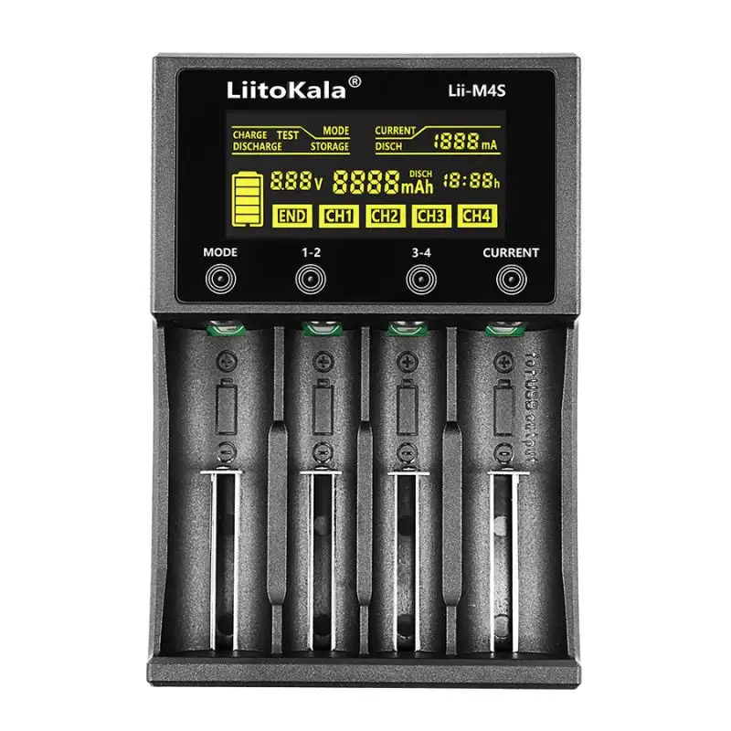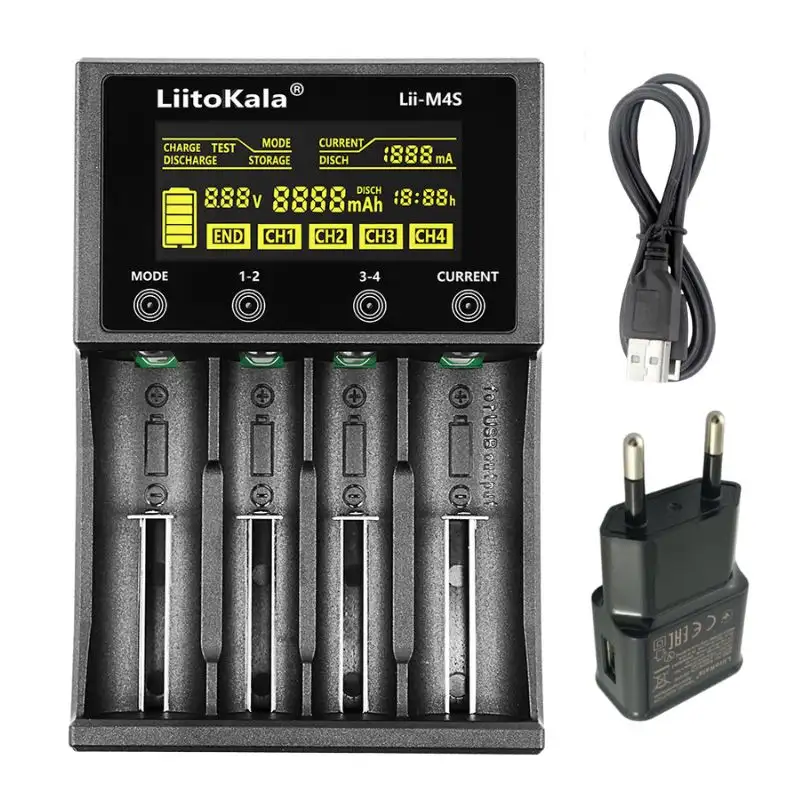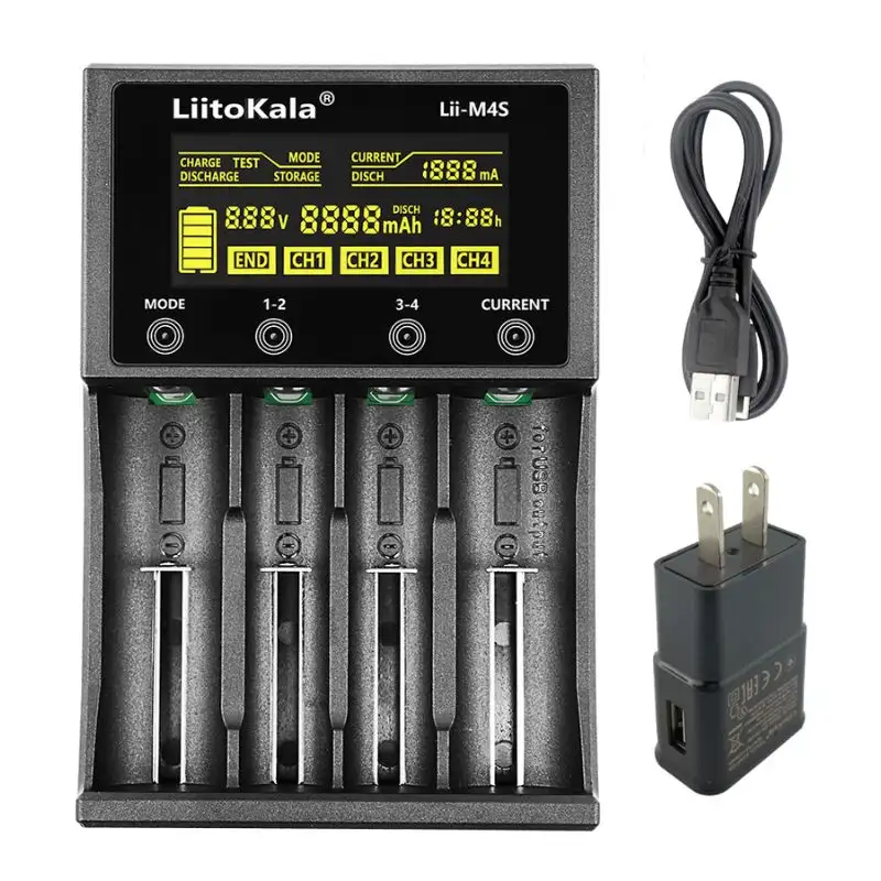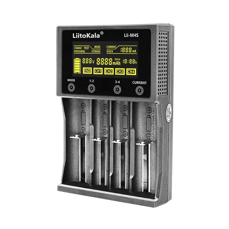 The LiitoKala Lii-M4S is an upgraded 4-slot smart charger designed for Li-ion and NiMH/NiCd rechargeable batteries. It offers multiple selectable current modes, USB power output, and a built-in battery test function, all managed by an intelligent microprocessor that ensures stable and accurate charging.
